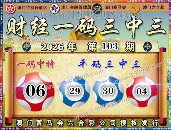 103期开奖结果:34-03-01-30-29-04 特码06