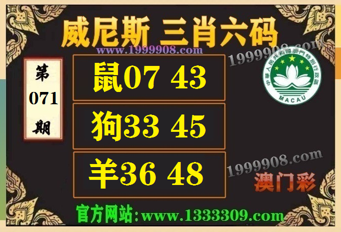 071期:(威尼斯三肖六码【鼠07.43、狗33.45、羊36.48